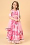 Pink Cotton Slub Printed & Lace Embellished Lehenga Set For Girls
