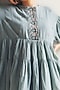 Featuring a pale blue tiered top in cotton base with lace inserts and hand embroidery. This contains only one piece.