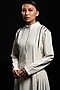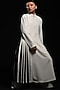 Featuring a white dress in martin crepe base with a collar, front zip opening, and box pleats. This contains only one piece.