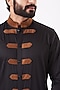 Featuring a black and tan shirt in giza cotton and vegan suede fabric base. This contains only one piece.