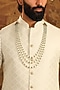Featuring a green and white layered mala studded with white freshwater pearl beads and handmade silk thread tassel. Accessorize this mala over a sherwani for an engagement or a wedding ceremony.