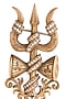 Oxidised Antique Gold Brass Crystal Damru Crest Brooch