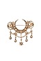 Featuring an oxidised antique gold celestial radiance crescent brooch, set in brass. Style it with a blazer or sherwani for festive occasions or wedding ceremonies.