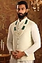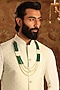 Featuring a white and green layered mala studded with jade beads and cotton thread tassel. Accessorize this mala over a sherwani for an engagement or a wedding ceremony.