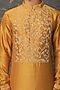 Featuring a mustard kurta in chanderi base with embroidery. It is paired with pants. Perfect wear for a festive occasion or haldi ceremony.
