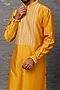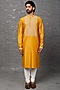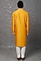 Featuring a mustard kurta in chanderi base with embroidery. It is paired with white churidar pants. Perfect wear for a festive occasion, haldi or sangeet ceremony.