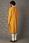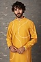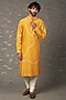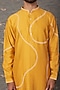 Featuring a mustard kurta in cotton silk base with zardosi hand embroidery. It is paired with churidar pants. Style it with a pair of kolhapuris and a bracelet for a festive occasions or haldi ceremony.