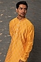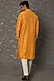 Featuring a mustard kurta in chanderi base with a diamond pattern and hand embroidery. It is paired with ivory pants. Perfect wear for a festive occasion or haldi ceremony.