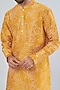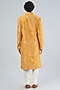 Featuring a mustard kurta in chanderi base with print. It is paired with white churidar pants. Perfect wear for a festive occasion, haldi or sangeet ceremony.