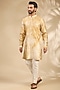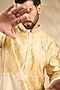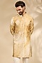 Featuring a mustard kurta in silk base with print. Style it with trousers, pair of mojaris and a bracelet for a festive occasion or pooja ceremony.