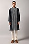 Featuring a navy blue dhruvtara kurta in chanderi base with hand embroidery. It is paired with ivory cotton churidar pants.