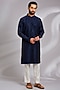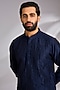 Featuring a navy blue kurta in silk base. It is paired with pants. Style it with mojaris for a grand festive celebration, wedding, sangeet or engagement ceremony.