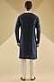 Featuring a navy kurta in chanderi base with camo-block hand embroidery. It is paired with pants. Perfect wear for any festive occasion or haldi ceremony, exuding traditional charm and elegance.