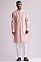 Featuring an old rose pink kurta in chanderi base with block patched embroidery. It is paired with pants. Perfect attire for any festive occasion or sangeet ceremony, exuding traditional charm and timeless elegance.