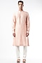Featuring a pink kurta in chanderi base with hand embroidery.It is paired with contrasting ivory pants. Perfect wear for a festive occasion or pooja ceremony.