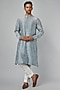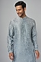 Featuring a powder blue kurta in chanderi base with camo-block print and hand embroidery. Style it with pants and shoes for a festive occasion, wedding, sangeet or engagement ceremony.