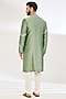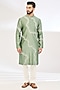 Featuring a sage green kurta in chanderi base with embroidery. It is paired with pants. Perfect attire for any festive occasion or sangeet ceremony, exuding traditional charm and elegance.