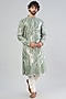 Featuring a sage green kurta in chanderi base with print. It is paired with white churidar pants. Perfect wear for a festive occasion or sangeet ceremony.
