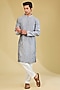 Featuring a silver kurta in chanderi base with camo-block hand embroidery. It is paired with pants. Perfect for a festive gatherings, engagement ceremony or cultural celebrations, exuding charm and elegance.