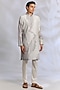 Featuring a silver and ivory kurta in chanderi base. It is paired with pants. Style it with classic mojaris and a sleek watch for a refined look, perfect for wedding festivities, poojas or evening celebrations.