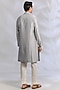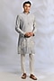 Featuring a silver and white kurta in chanderi base. It is paired with pants. Style it with classic mojaris and a sleek watch for a refined look, perfect for wedding festivities, poojas or evening celebrations.