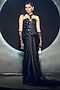 Featuring a black draped skirt in satin base. It is paired with an embroidered net corset. Accentuate it with zircon dangler earrings, a clutch and high heels for a reception, cocktail and engagement ceremony.
