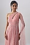 Featuring a blush pink gown in net base with embroidery. Accentuate it with swarovski or zircon jewellery and heels for a wedding or sangeet ceremony.