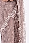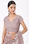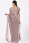 Featuring a dusty purple saree in net and organza base with cutwork hand embroidered border. It is paired with a matching blouse.