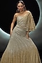 Featuring a golden lehenga in net base with hand embroidery. It is paired with a viscose bustier. Accentuate with statement jewellery and heels for a festive occasion, sangeet or wedding ceremony.