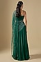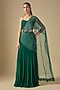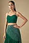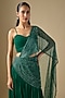 Featuring an emerald green gathered skirt saree in net organza and viscose georgette base. It is paired with a blouse having scalloped embroidery. Accentuate it with statement jewellery and wedges for a sangeet ceremony, cocktail or mehendi ceremony.