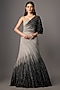 Featuring a grey and black lehenga in net base with hand embroidery. It is paired with a viscose bustier. Accentuate with statement jewellery and heels for a reception, sangeet or wedding ceremony.