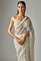 Featuring an ivory saree in net base with hand embroidery. It is paired with a viscose blouse. Style it with a choker necklace set and heels for a festive occasion, wedding or engagement ceremony.