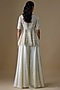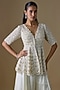 Featuring an ivory peplum top in organza base with scallop embroidery. It is paired with flared pants. Accentuate it silver jewellery and heels for a festive occasion or sangeet ceremony.