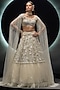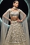 Featuring an ivory lehenga in taiban net base with sequins hand embroidery. It is paired with an organza bustier. Accentuate with statement jewellery and heels for a festive occasion, sangeet or wedding ceremony.