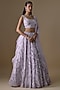 Featuring a lavender lehenga in organza base with embroidery. It is paired with an embroidered blouse and an embroidered dupatta. Accentuate it silver jewellery, embellished heels and a clutch for a wedding, sangeet ot engagement ceremony.