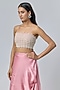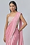 Featuring a light pink saree in satin organza and satin georgette base with embroidery. It is paired with an embroidered blouse. Accentuate it with statement earrings and heels for any festive occasion or weddings.