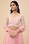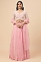 Featuring a lilac pink gathered lehenga in organza and viscose base. It is paired with a blouse having floral jaal work and an organza dupatta. Accentuate it with statement earrings and heels for a complete look.