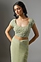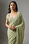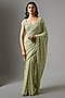 Featuring a mint green saree in viscose and net base with embroidery. It is paired with a blouse. Accentuate it with statement earrings, sleek metallic heels and a chic embellished clutch for a stylish ensemble, ideal for weddings, cocktail evenings or engagement celebrations.