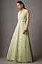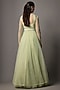 Featuring a mint green jacket in net base with embroidery. It is paired with a bustier and a skirt. Accentuate it with statement earrings and sleek heels for a high-fashion edge, perfect for cocktail parties, receptions and glamorous evening events.
