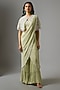 Mint Green Organza Floral Cutwork Jacket Draped Saree Set