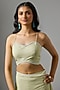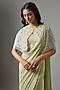 Featuring a mint green draped gathered saree in organza and viscose georgette base. It is paired with a georgette bustier and a cape having floral cutwork, including tassel detailing. Accentuate it with statement earrings, sleek metallic heels and a chic embellished clutch for a stylish ensemble, ideal for weddings, cocktail evenings or mehendi functions.