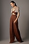 Mocha Brown Viscose & Organza Jumpsuit With Jacket