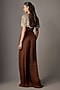 Featuring a mocha brown jumpsuit in organza and viscose base. It is paired with a hand-embroidered jacket. Accentuate it with statement earrings and heels for evening wear or dinner parties.