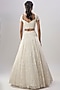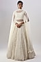 Featuring an off-white lehenga in organza and net base with embroidery. It is paired with a blouse and a dupatta. Accentuate it with emerald or zircon jewellery and heels for a wedding or reception ceremony.