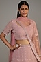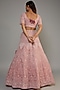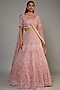 Featuring an old rose lehenga in organza base with motif embroidery. It is paired with a matching blouse and a dupatta