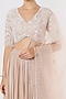 Featuring a peach gathered lehenga in organza and flat chiffon base. It is paired with a matching pearl embroidered blouse and a dupatta.