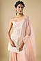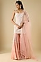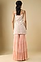 Featuring a peach kurta in organza and viscose georgette base with floral cutwork hand and machine embroidery. It is paired with layered sharara pants and a dupatta. Accentuate it with statement earrings and heels for a festive occasion or sangeet ceremony.