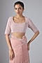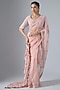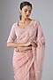 Featuring a pink saree in organza base with hand embroidery. It is paired with a satin velvet blouse. Accentuate it with pearl or diamond drop earrings, a sleek clutch and soft metallic heels for an elegant ensemble, ideal for engagement ceremonies, cocktail evenings or reception celebrations.