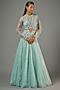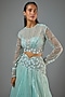 Featuring a powder blue lehenga in net base with 3D floral hand embroidery. It is paired with an embroidered blouse. Accentuate it with polki earrings and heels, perfect for engagement ceremonies, reception or elegant festive occasions.