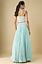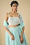 Featuring a powder blue gathered lehenga in organza and viscose georgette base with hand embroidery. It is paired with a blouse having scalloped embroidery and a chiffon dupatta having tassel detail.. Accentuate it with statement jewellery and heels for a wedding, engagement or sangeet ceremony.
